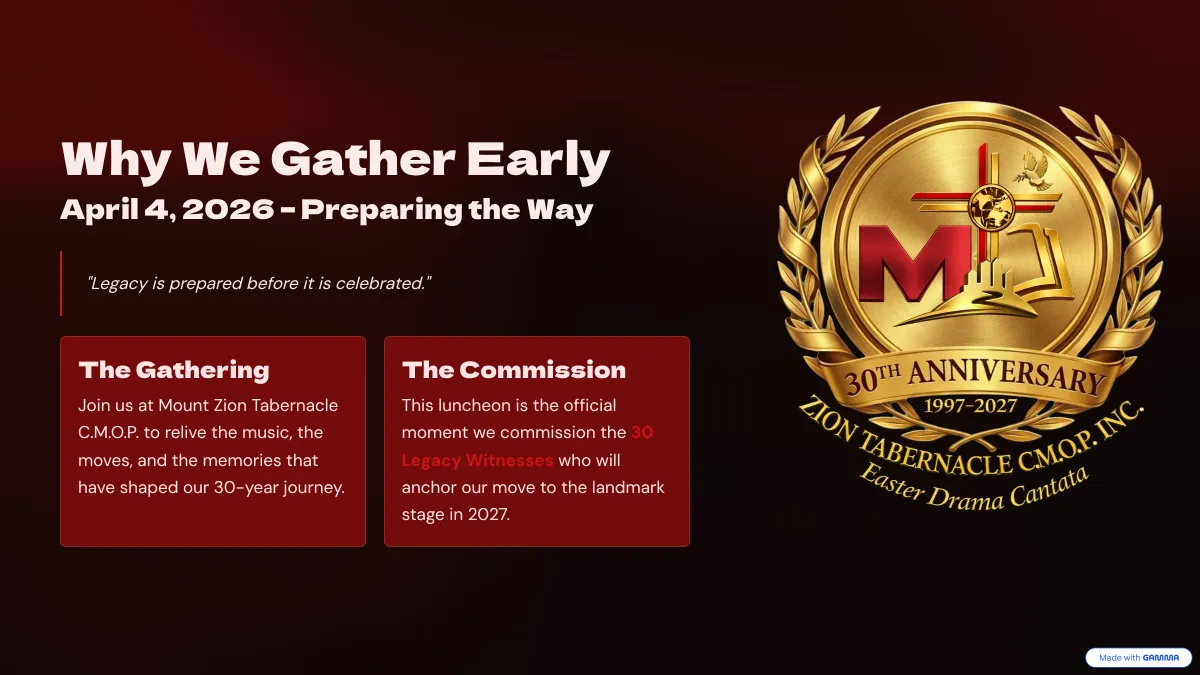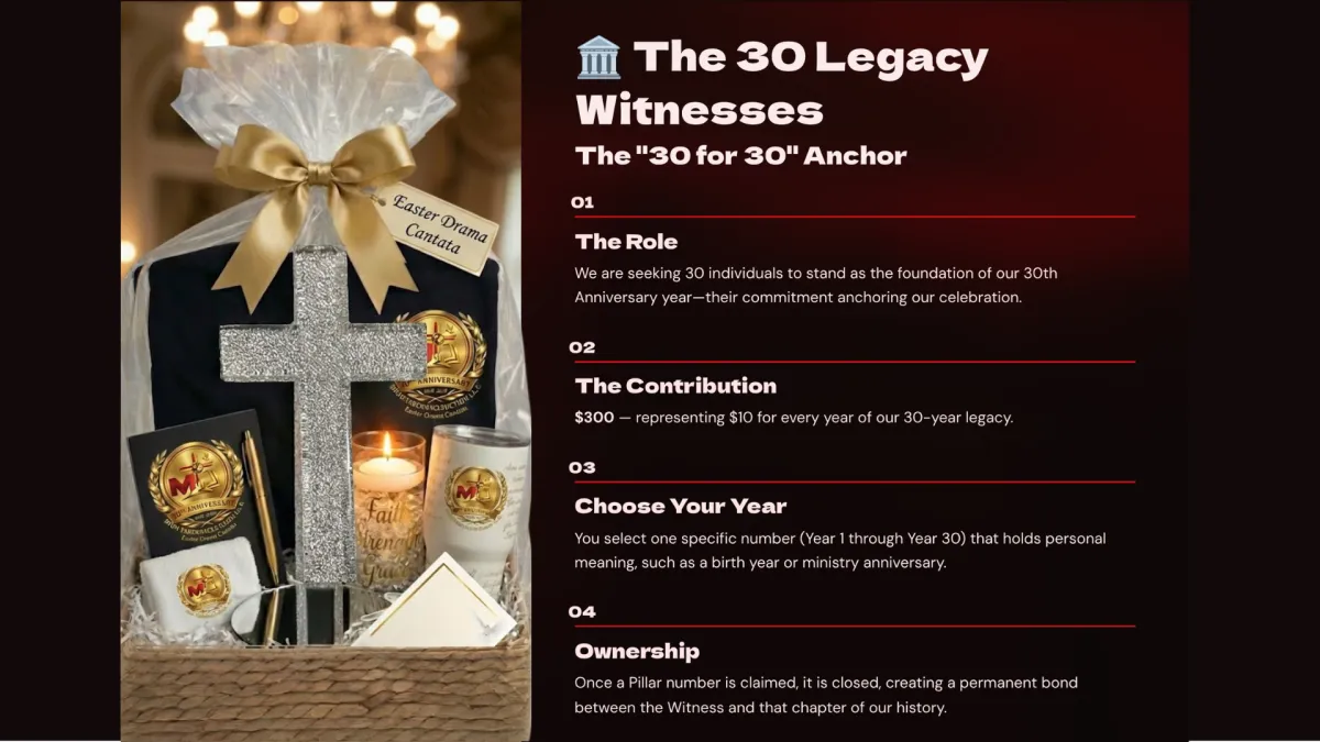 On April 4, 2026, we begin preparing for the 30th Anniversary Easter Drama Cantata.